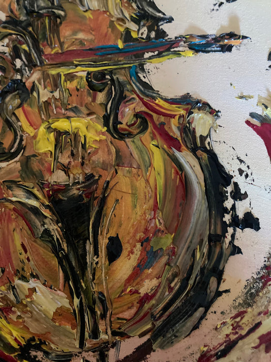 Musiciens Trompettiste Saxophoniste Jazz - Peinture sur toile 50x61cm