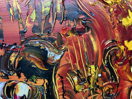 Musiciens piano contrebasse - Peinture sur toile 55x46cm
