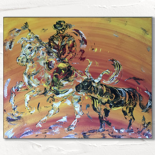 Camargue gardian taureau toile - Peinture de 50x50 cm