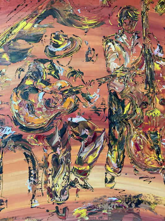 Tableau Peinture Groupe Musiciens Jazz - Spatule Reliefs - Toile Originale 92x73cm