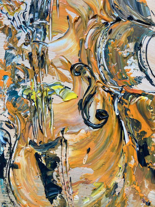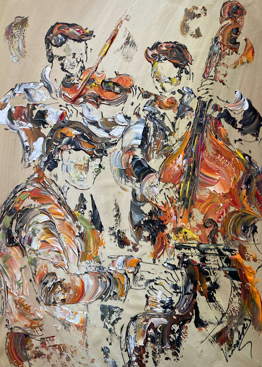 Tableau Peinture Groupe Musiciens Jazz Contrebasse Piano Violon - Spatule Reliefs - Toile Originale 50x70cm