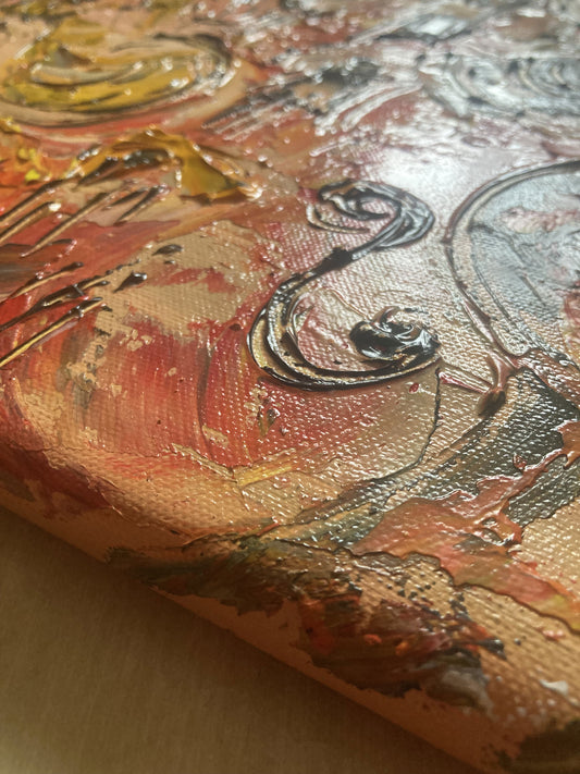 Tableau Peinture Fleurs Rose Saumon - Spatule Reliefs - Toile Originale 30x60cm