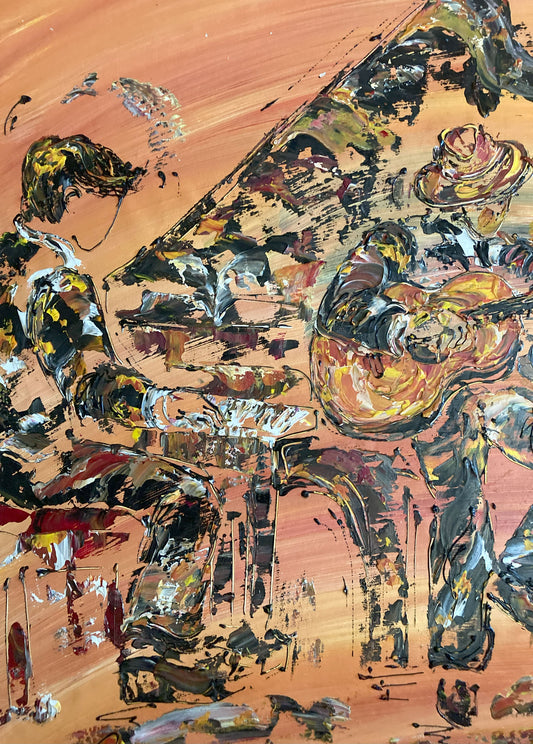 Tableau Peinture Groupe Musiciens Piano Violon Saxo - Spatule Reliefs - Toile Originale 60x70cm