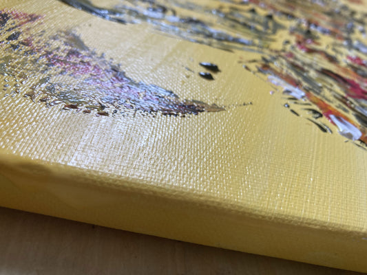 Tableau Peinture Taureau fond soleil - Spatule Reliefs - Toile Originale 40x40cm