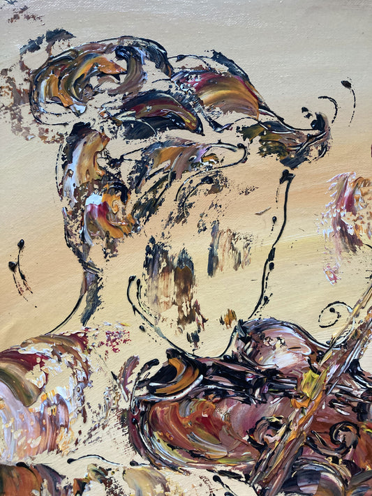 Tableau Peinture violoniste - Spatule Reliefs - Toile Originale 46x38cm