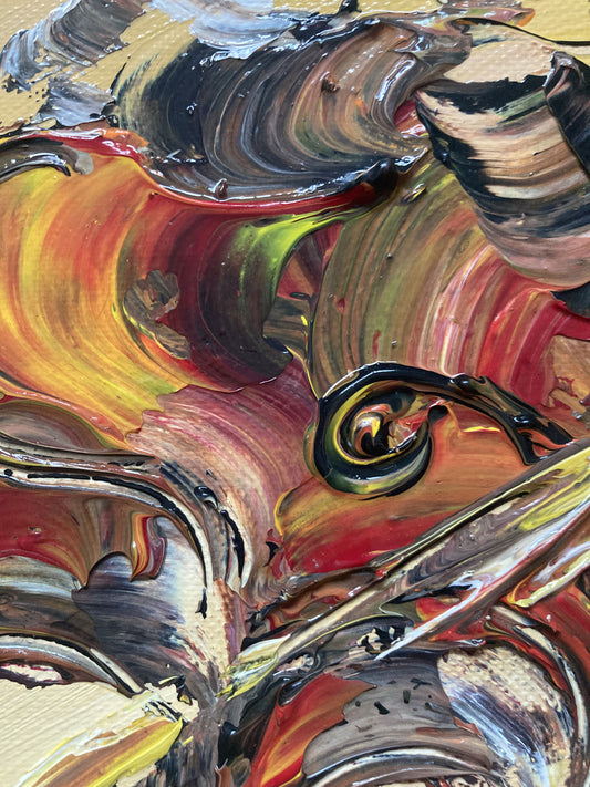 Tableau Peinture Tête Cheval Multicolore - Spatule Reliefs - Toile Originale 40x40cm