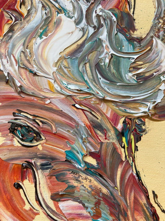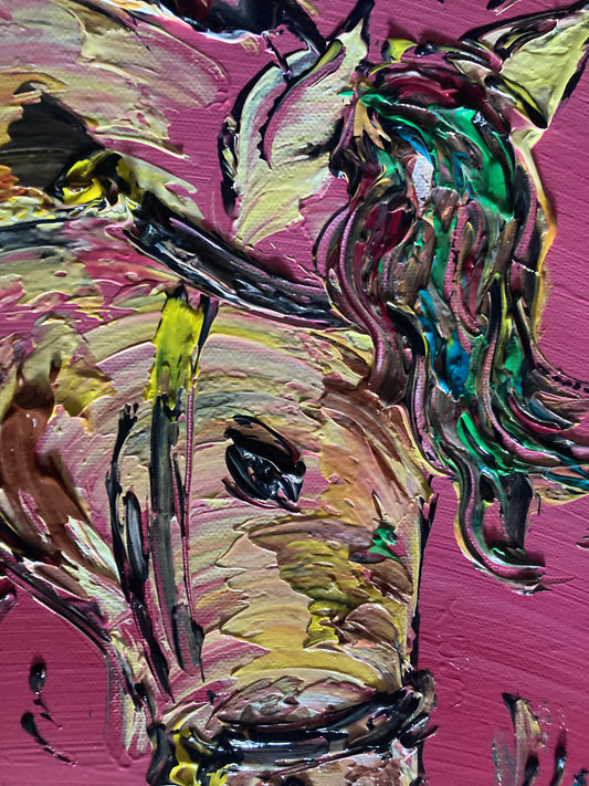 Tableau Peinture Tête Cheval Multicolore - Spatule Reliefs - Toile Originale 40x40cm