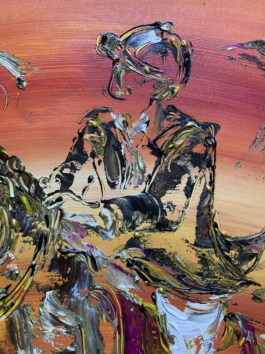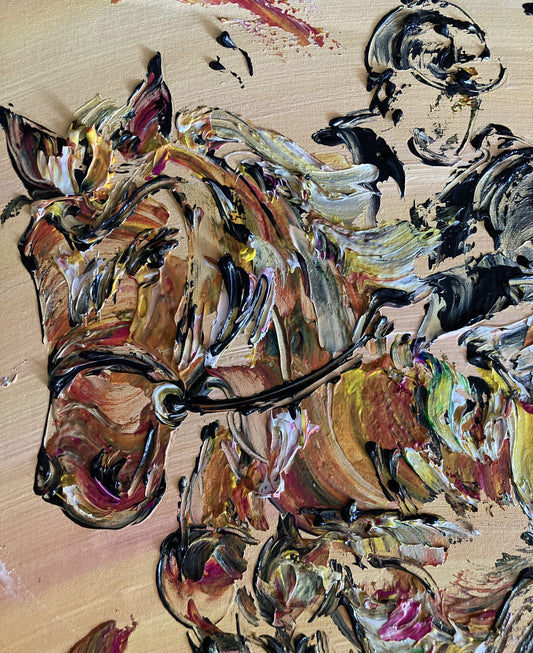 Tableau Peinture équitation saut d'obstacle - Spatule Reliefs - Toile Originale 40x40cm