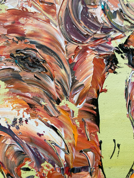 Je peins mes tableaux, ce sont des originaux. Chaque peinture est une création unique. Je peins à la spatule sur des toiles montées sur châssis. La peinture est ensuite vernie. Pour des commandes particulières, n'hésitez pas à me contacter !