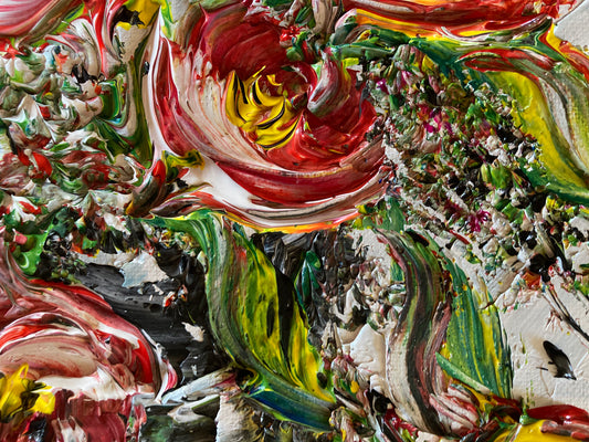 Tableau Peinture Fleurs Rouges - Spatule Reliefs - Toile Originale 30x60cm