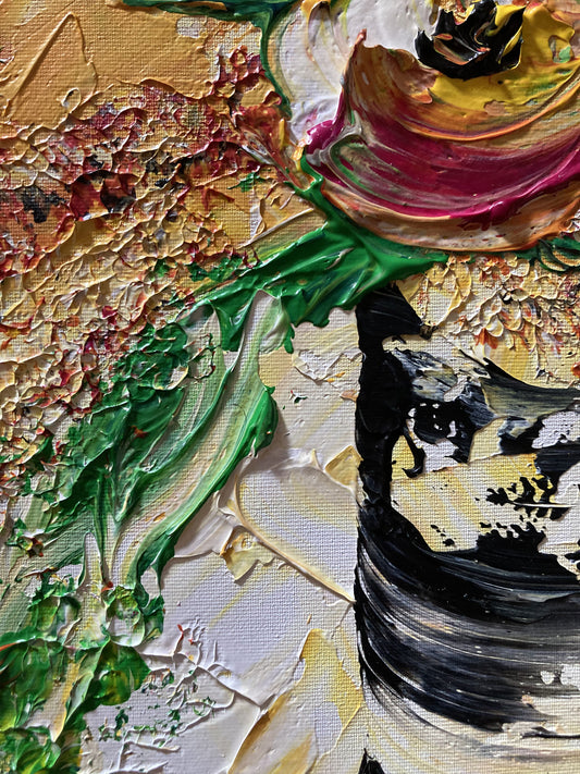 Bouquet fleurs jaune et blanche - Peinture sur toile 55x46cm