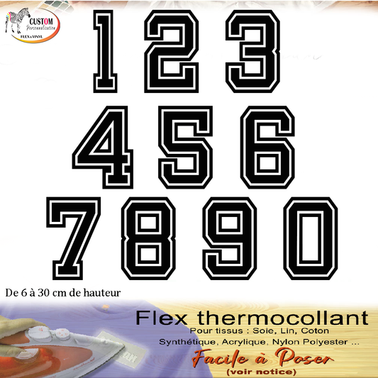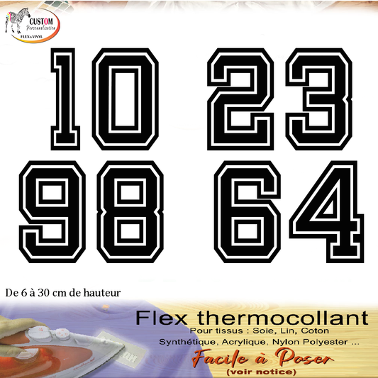 2 Chiffres façon lettrage université - Flex Thermocollant