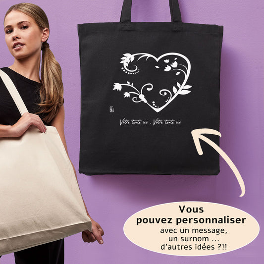 Sac Cabas Cœur de Fleurs - Spacieux 21L Personnalisable