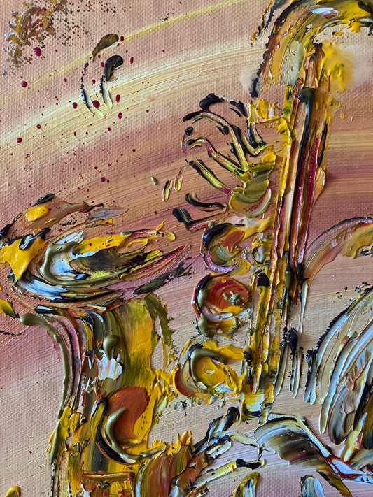 Tableau Peinture Saxophoniste Jazz - Spatule Reliefs - Toile Originale 50x70cm