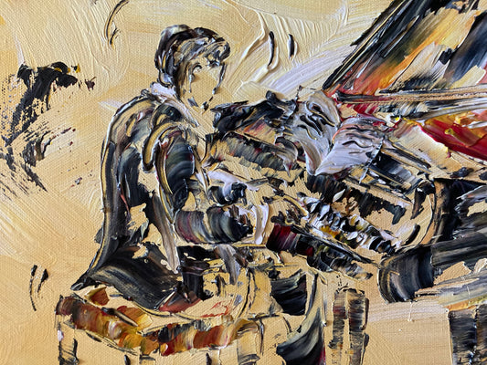 Tableau Peinture Pianiste Jazz - Spatule Reliefs - Toile Originale 55x46cm
