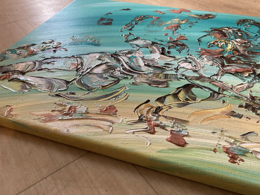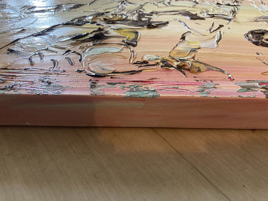 Je peins mes tableaux, ce sont des originaux. Chaque peinture est une création unique. Je peins à la spatule sur des toiles montées sur châssis. La peinture est ensuite vernie. Pour des commandes particulières, n'hésitez pas à me contacter !