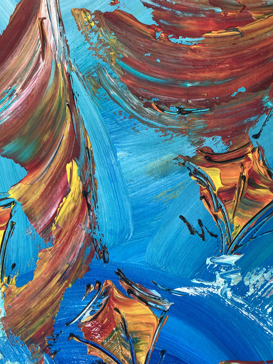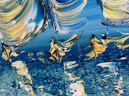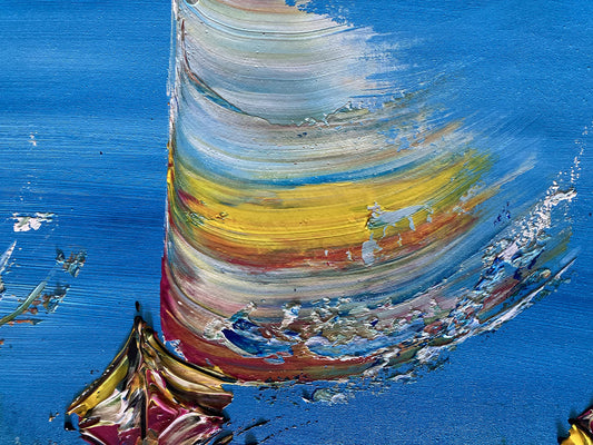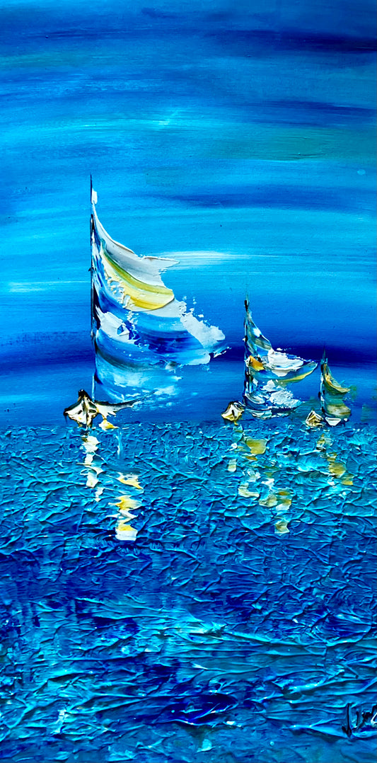 Tableau Peinture Voiliers Océan Marine - Spatule Reliefs - Toile Originale 30x40cm