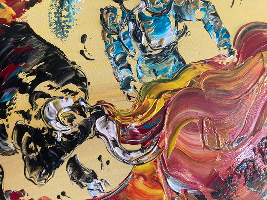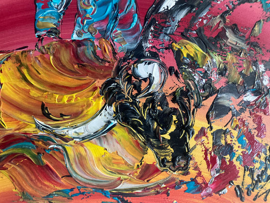 Tableau Peinture Corrida Tauromachie - Spatule Reliefs - Toile Originale 30x50cm