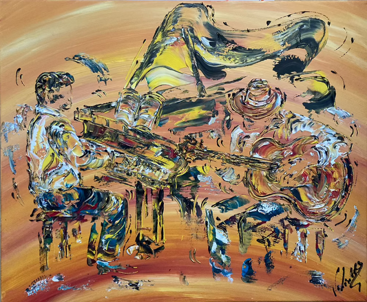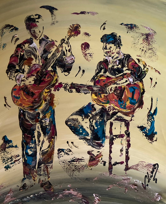 Musikerduo Gitarre und Klavier - Gemälde auf Leinwand 73x60 cm