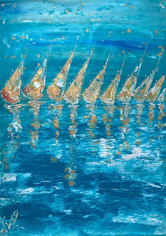 AusverkauftMarine Segelboote - Gemälde auf Leinwand 30x30cm