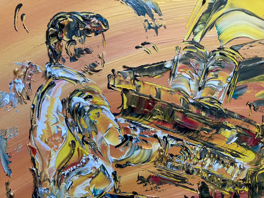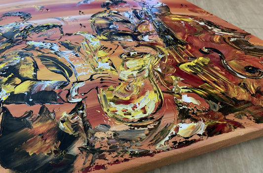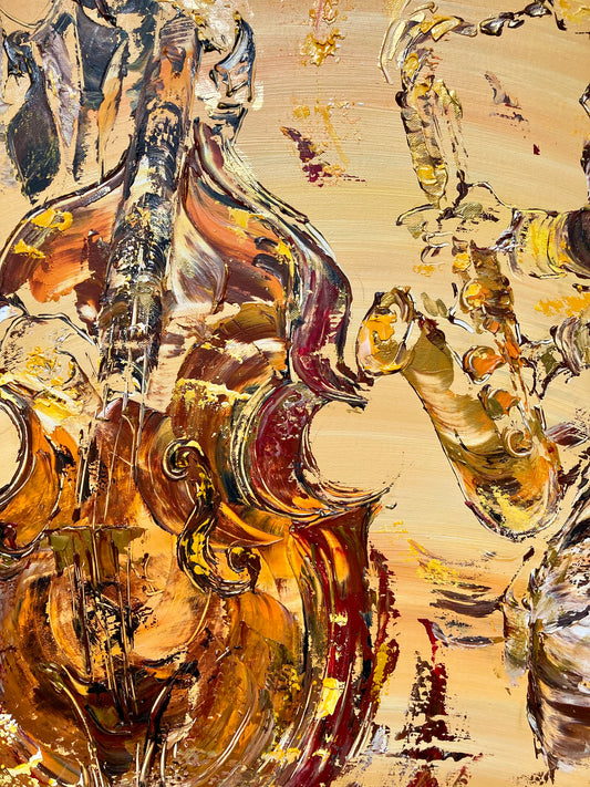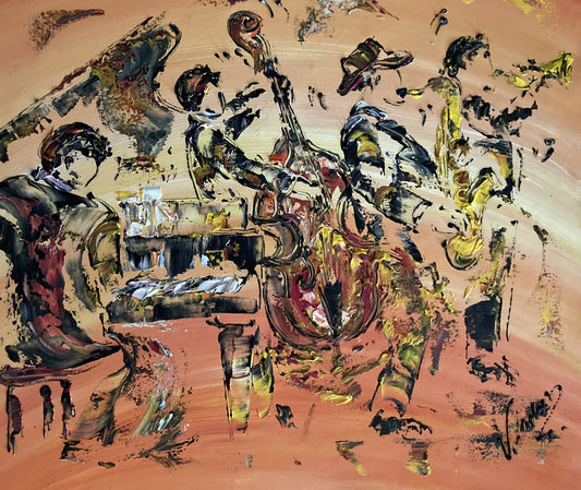 Musicians guitar piano drums - Painting on canvas 73x60 cm