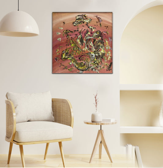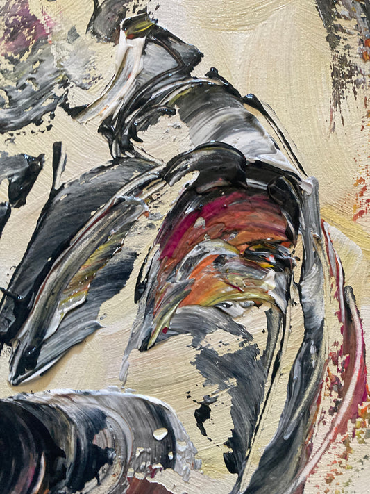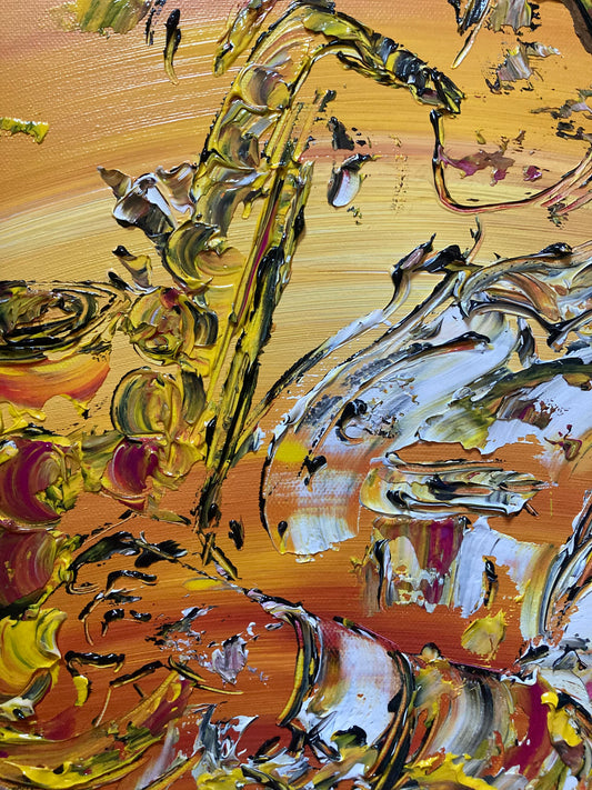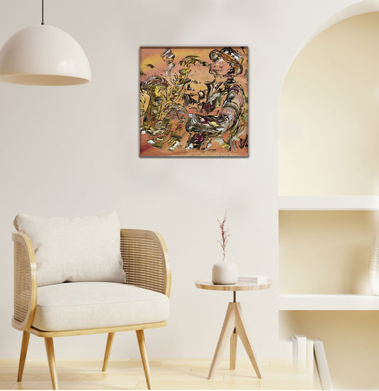 Musicians Oboe Accordion - Painting on canvas 55x46 cm