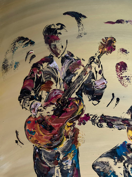 Group Musicians Double Bass Guitars - Painting on canvas 55x46 cm