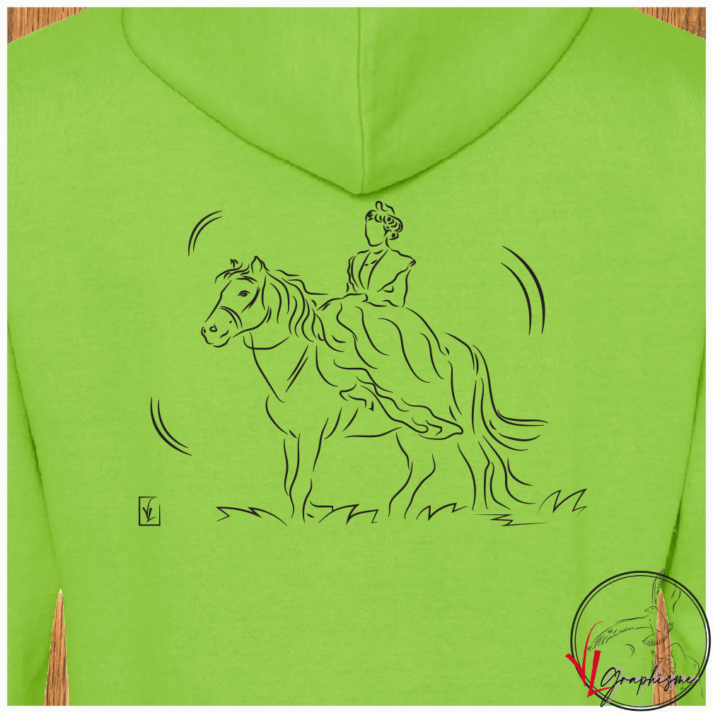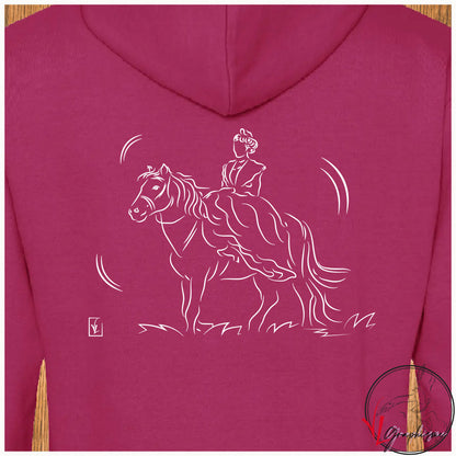 Graphisme au dos : Camargue Arlésienne à cheval en amazone