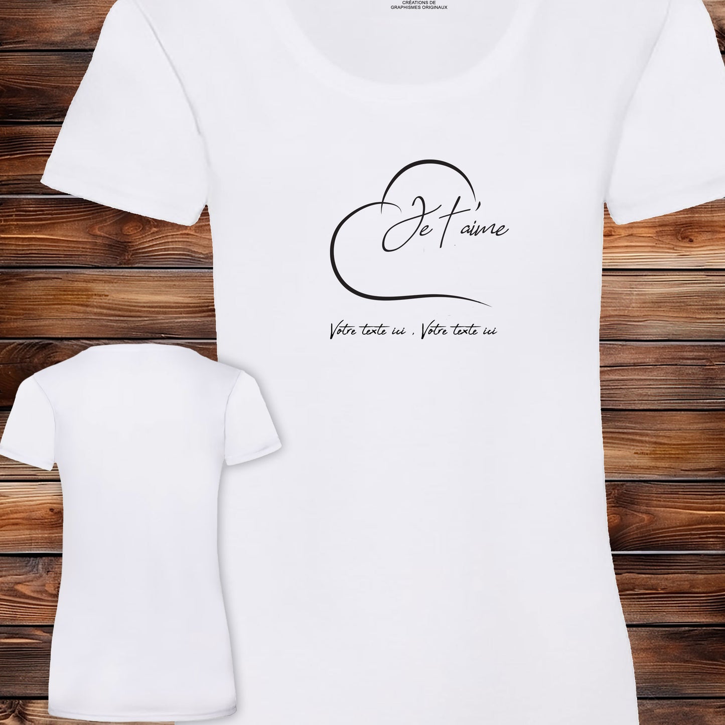 T-shirt Coton Cœur Je t'aime Amour - Personnalisable