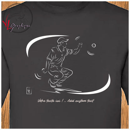 Ce t-shirt allie confort, qualité et passion de la pétanque. Personnalisez le avec une phrase humoristique, un surnom ou un message pour en faire un vêtement unique qui vous ressemble !