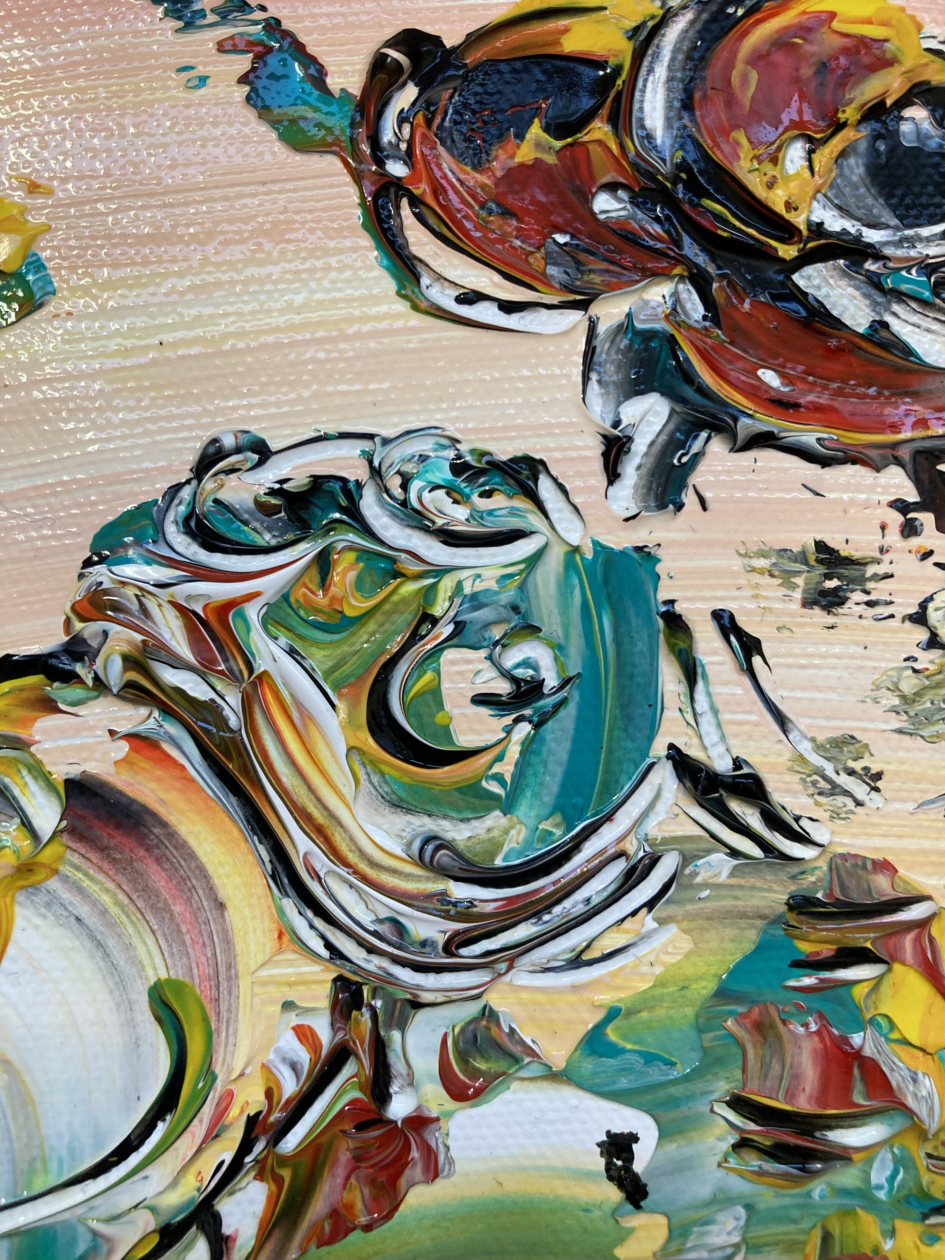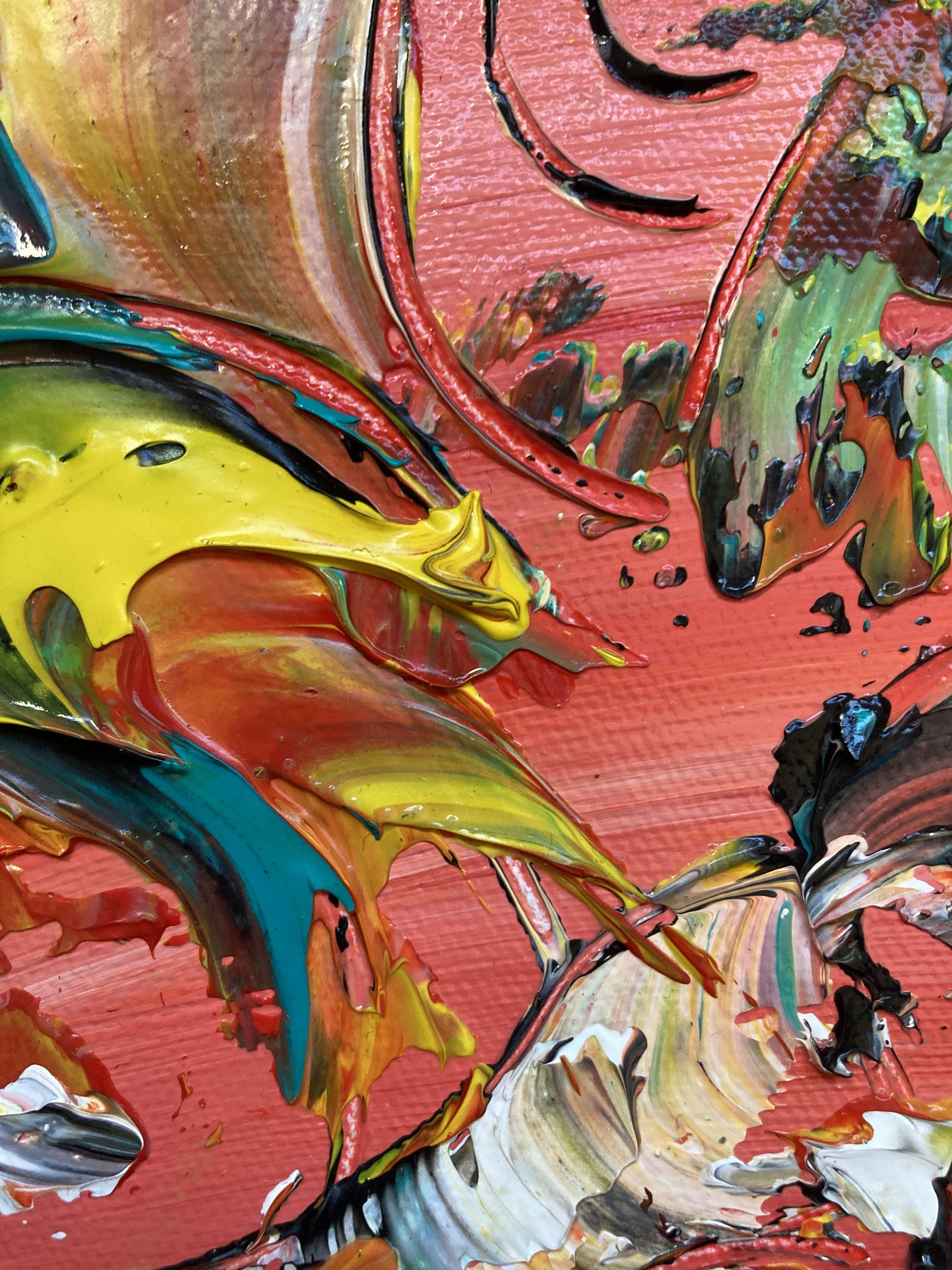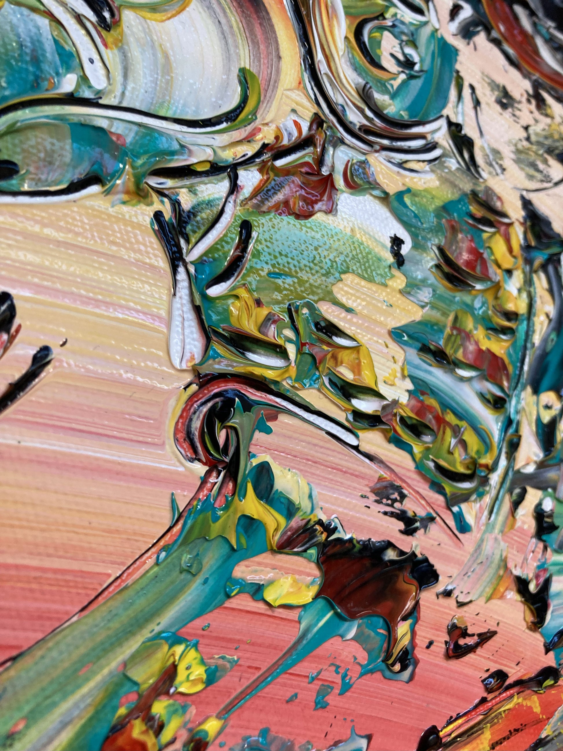 - Technique artistique : Peinture acrylique à la spatule sur toile - reliefs et texture pour un rendu vivant et dynamique