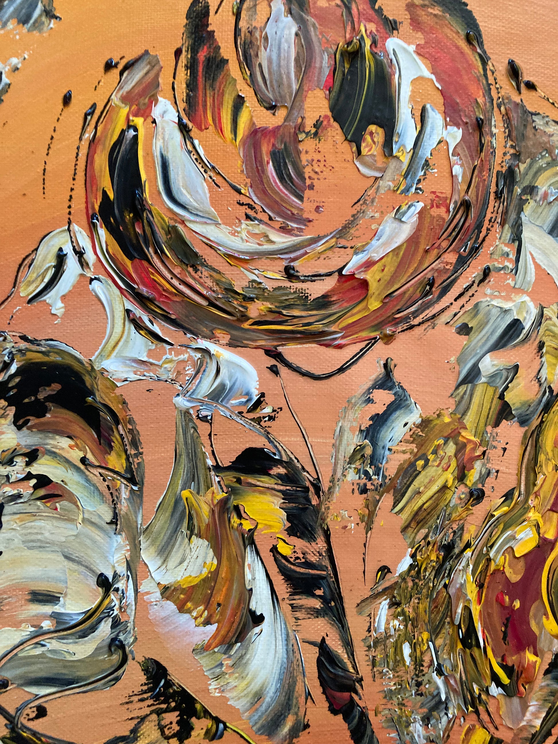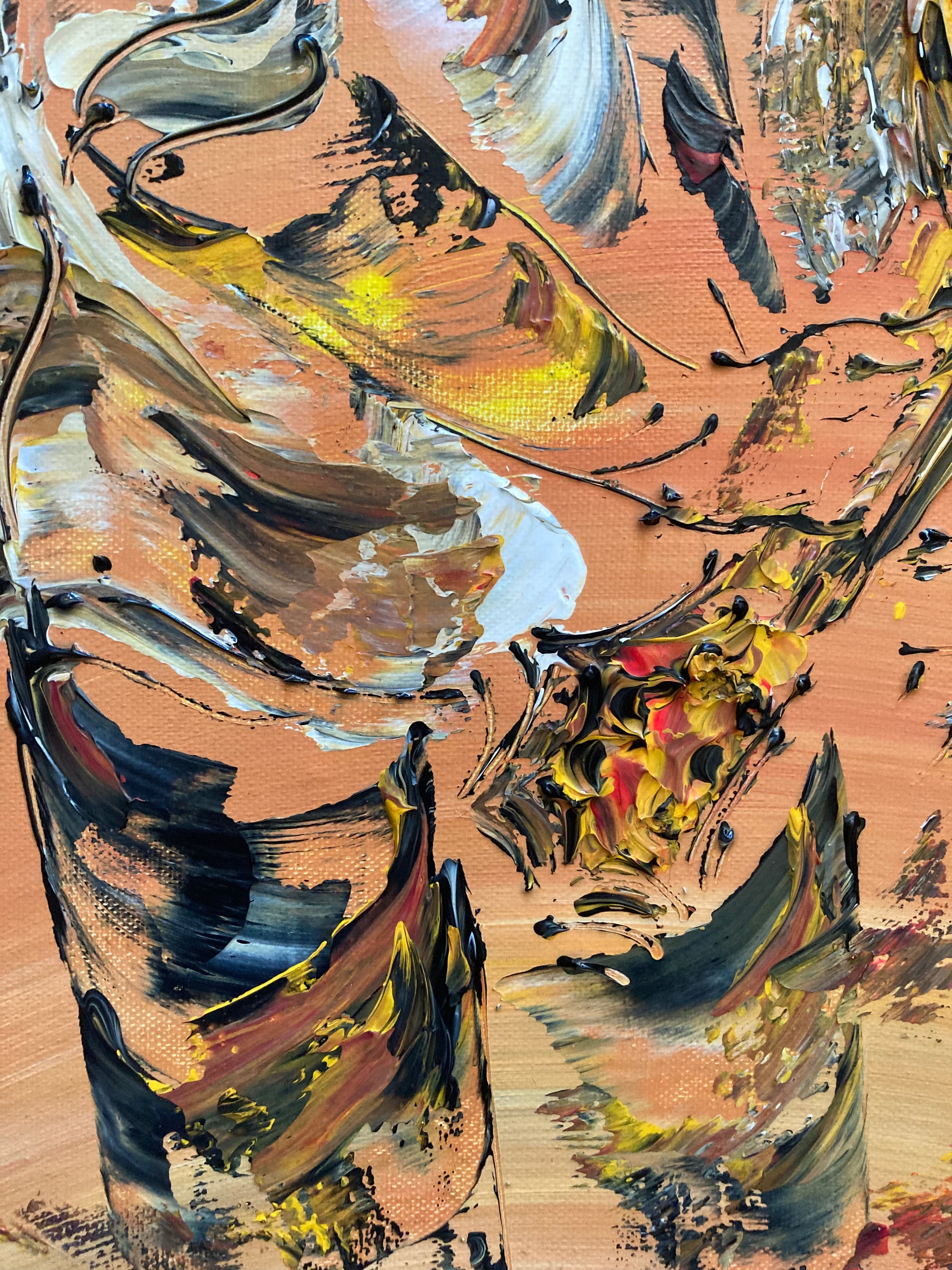 - Technique artistique : Peinture acrylique à la spatule sur toile - reliefs et texture pour un rendu vivant et dynamique