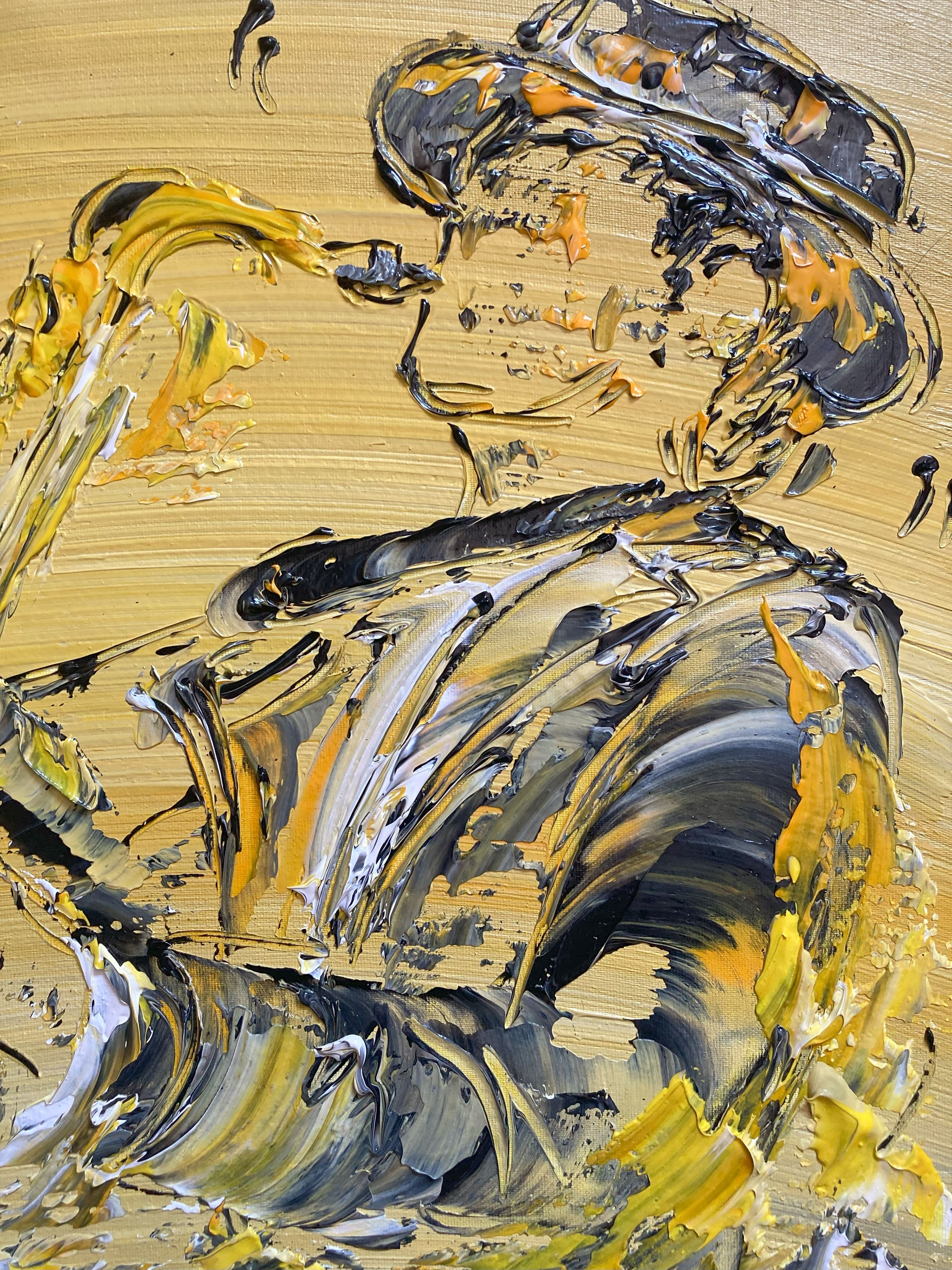Chaque coup de spatule raconte l'histoire de ce musicien de jazz. Les reliefs de la peinture acrylique donnent vie et profondeur à la scène, créant des jeux d'ombres et de lumières fascinants. Les couleurs chaudes et vibrantes, la texture de la matière... tout concourt à faire vivre cette scène sous vos yeux. Une création qui capture l'âme du jazz et la passion du saxophoniste.