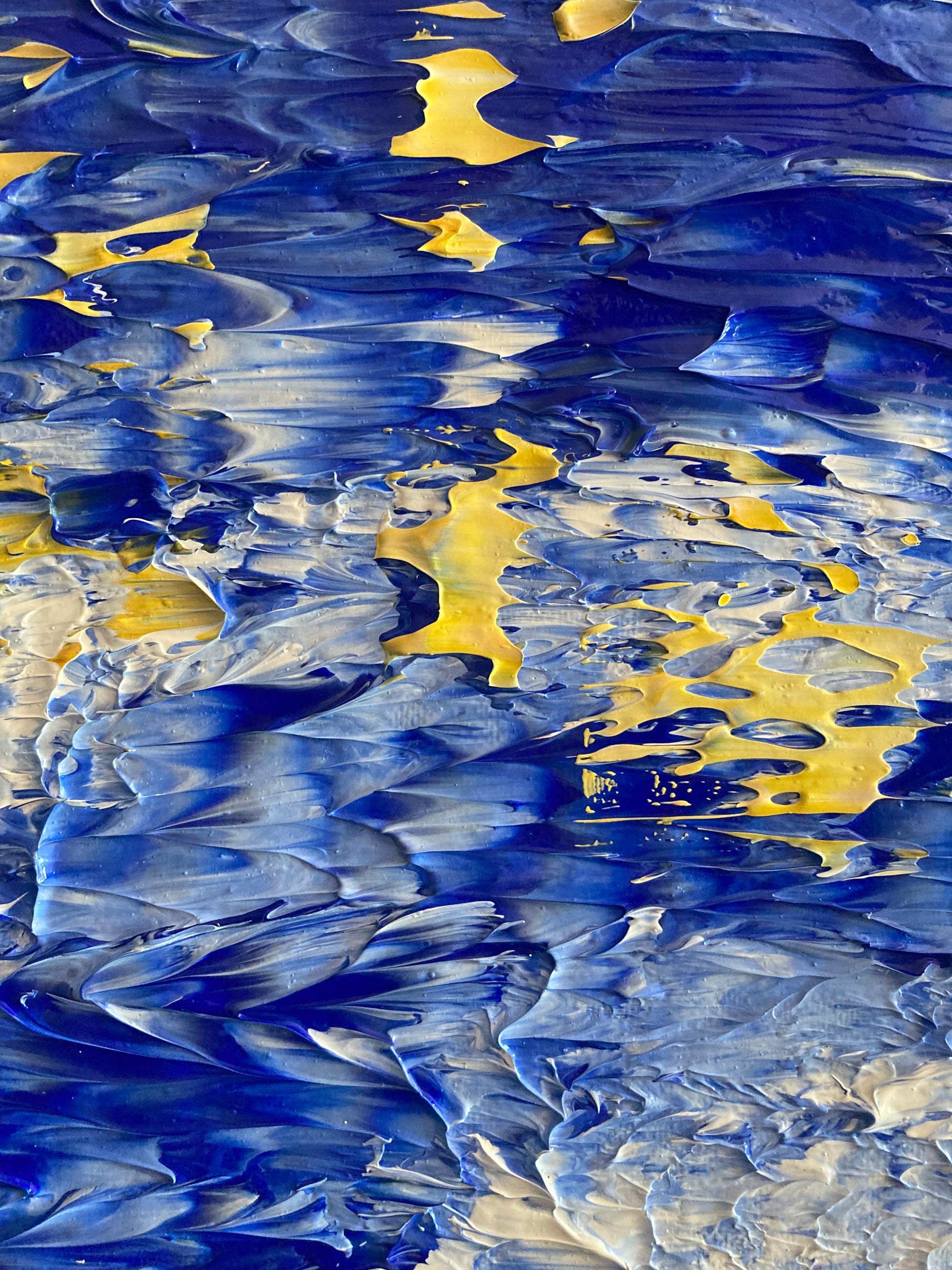 - Technique artistique : Peinture acrylique à la spatule sur toile - reliefs et texture pour un rendu vivant et dynamique