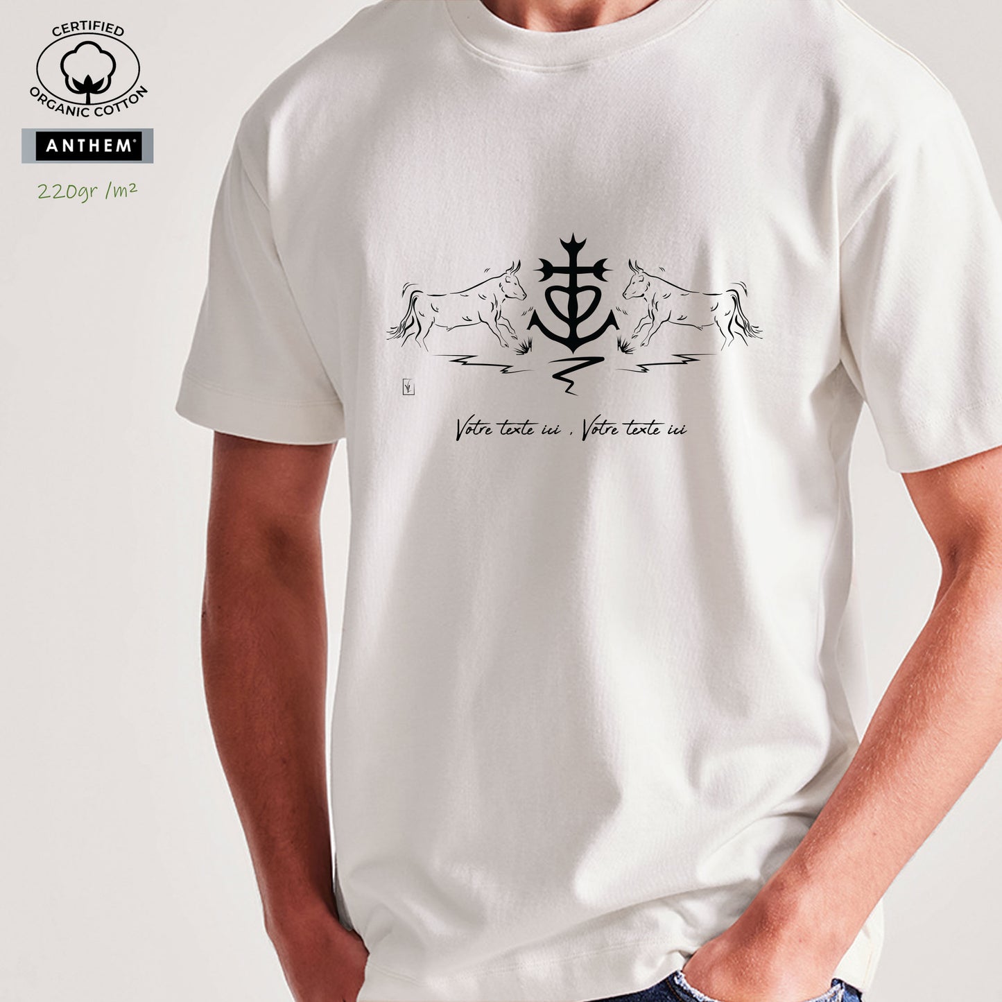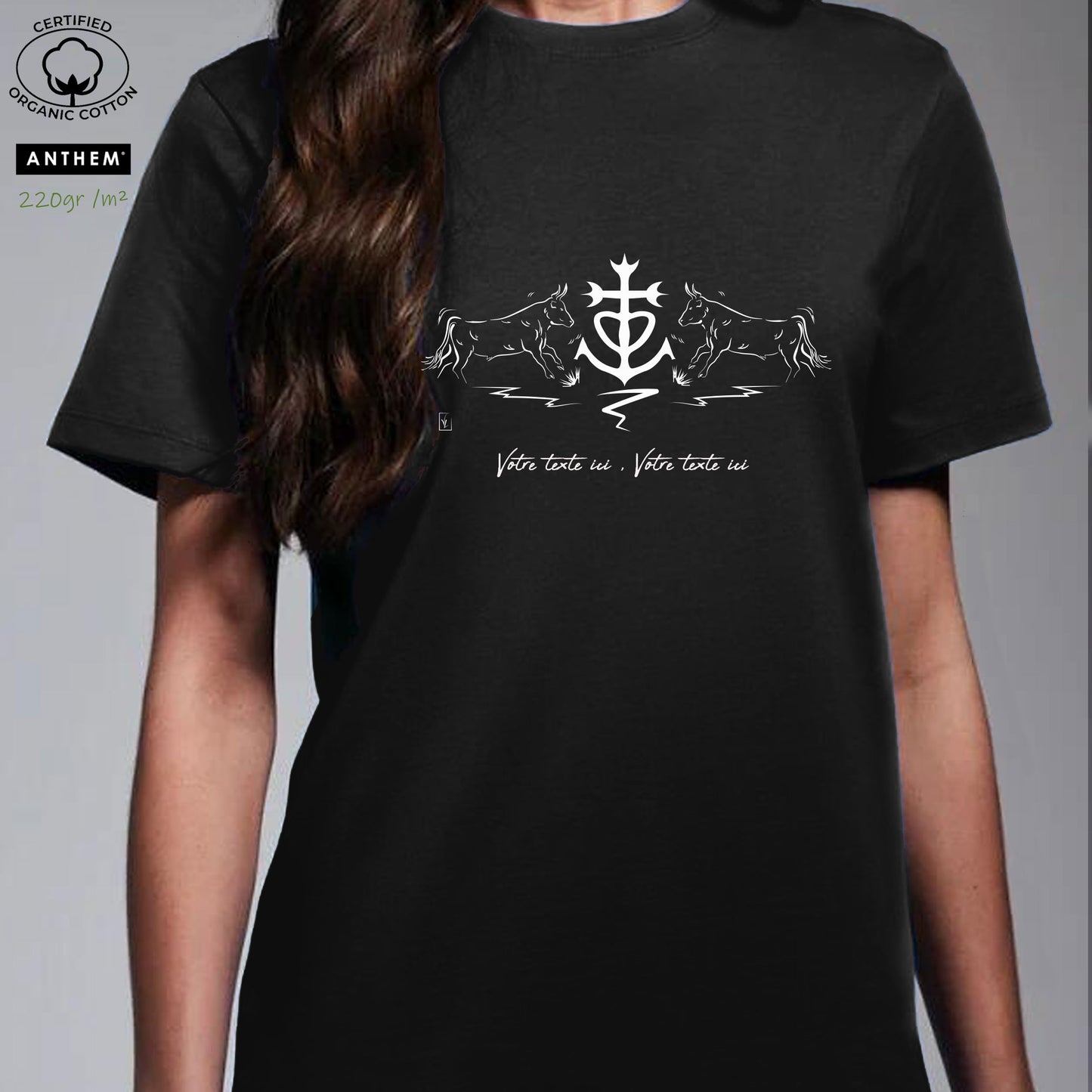 T-shirt Coton Bio Taureaux Croix de Camargue - Personnalisable