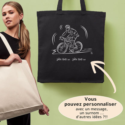 Offrez-vous ou offrez ce sac cabas unique aux passionnés de cyclisme. Un cadeau authentique.