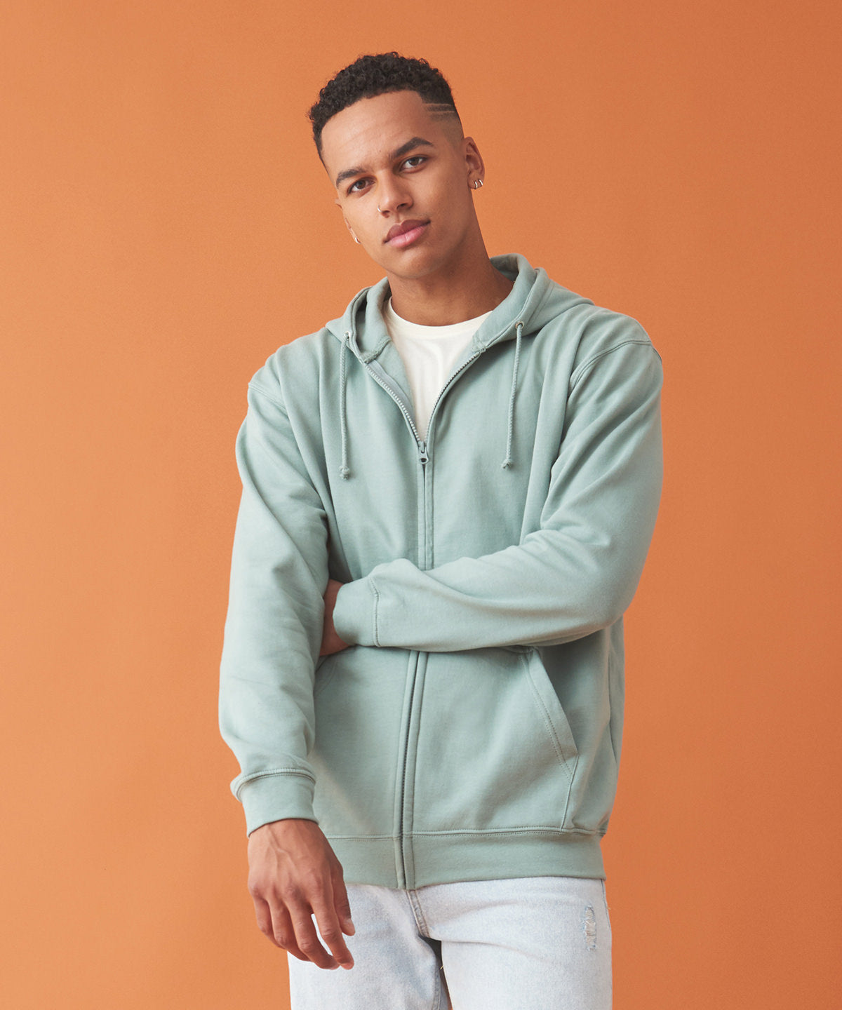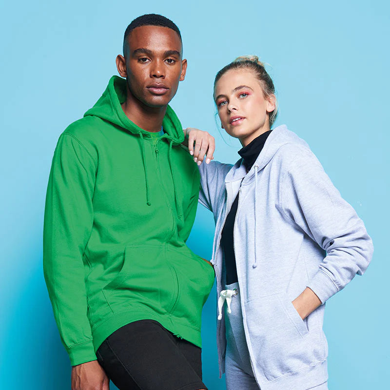 Veste zippée sweat à capuche 280g - Emplacements coeur & dos - Nuancier couleur vert bleu